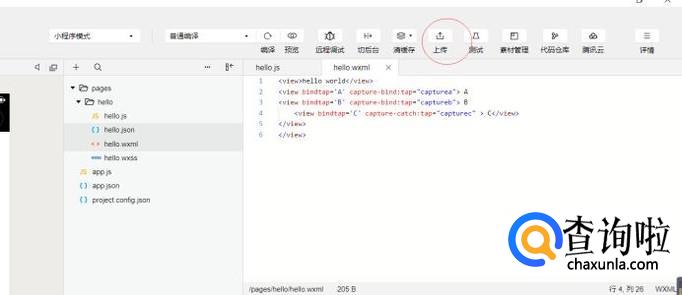 如果代码本地调测的差不多了,可以点击下图中的上传,这样将可以将编写的小程序状态置为体验版本