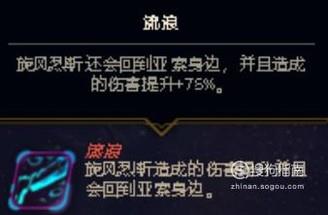 当亚索发出旋风的时候,流浪芯片会使风折返回来,这样敌人就会受到两次伤害,这在团战中是很占优势的。
