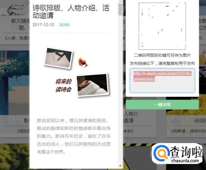 点击进入【挑选风格排版】后,你可以看到各种各样的排版范例,如果觉得哪篇排版的风格是你所需要的,可以进行扫码使用。你只要将文字换成你需要的就可以了,省去了自己排版的麻烦