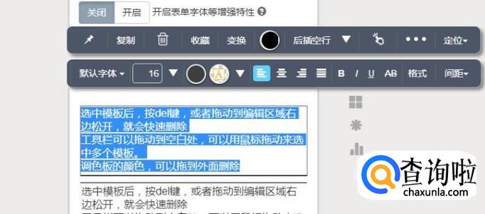 单击你所要修改的部分,系统会自动帮你进行全选,如果你不需要全选,只要再点一次就可以了。上方会自动出现功能区,你可以对文字的颜色、大小、字号进行更改,也可以调整间距等