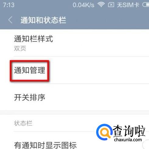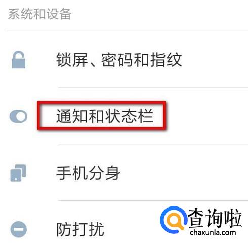 在手机上,点设置按钮,打开手机设置界面。在这里,再点:通知和状态栏