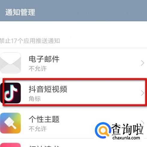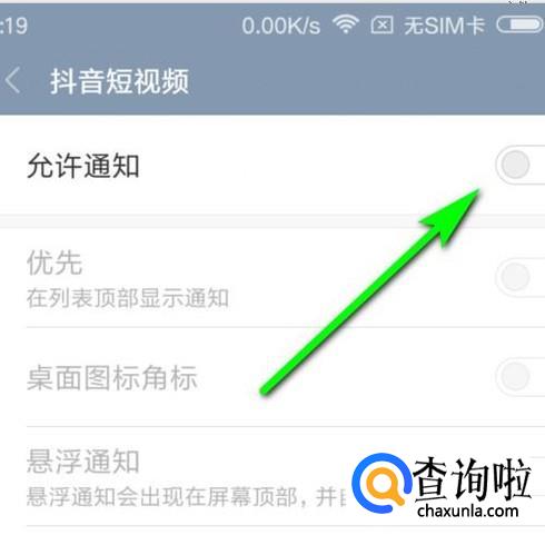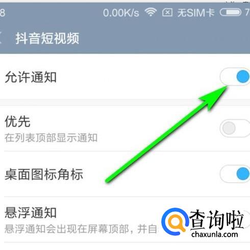 转到设置抖音短视频的设置界面,当前第一项“允许通知”,默认是开启的。