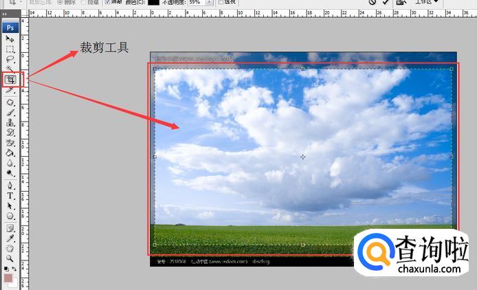 选择下图所示的裁剪工具,在画布上拉出你需要裁剪的部分。