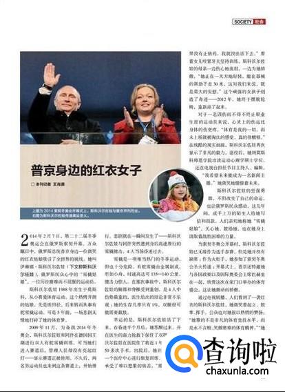 环球人物除了经济政治还有艺术之外对于体育界的运动员也有报道,比如当时俄罗斯举办索契冬奥会的时候坐在总统旁边的俄罗斯女运动员的励志事迹也被载入了环球人物杂志的篇幅中。