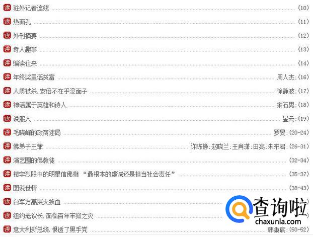 环球人物虽然是以人物为切入点进行介绍,但是却不是一本简单的人物传记类的杂质,而是以人物为引子来说明社会现象或者新闻话题。从书的目录就可以看出,每一位人物背后都是一篇精彩的叙事报道。