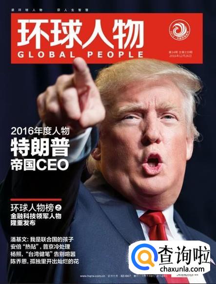 环球人物杂志是由人民日报主管,主办的,主要是介绍古今中外各行各业的名人轶事,就拿这本杂志的封面来看,往往都是结合当下的时事新闻热点话题来选择一位封面人物,比如美国总统选举的时候封面人物则是特朗普。