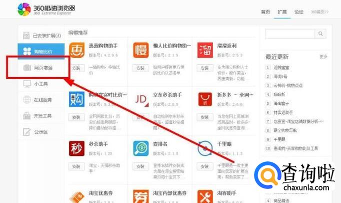 打开右上角的拓展中心,再找到网页增强