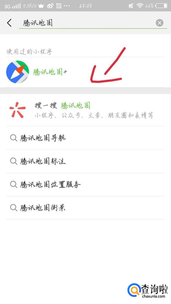 点击搜索框,在搜索框中输入“腾讯地图”如图1所示。点击腾讯地图,如图2箭头所示