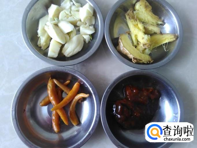 蒜米、老姜、泡椒、豆酱准备好。