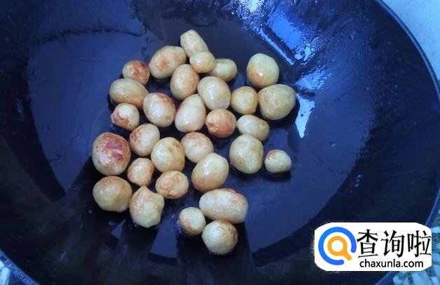 锅内放入油,油温6成热时放入小土豆煎制,一边煎一边翻面,防止煎糊。