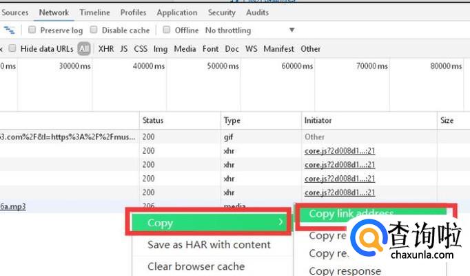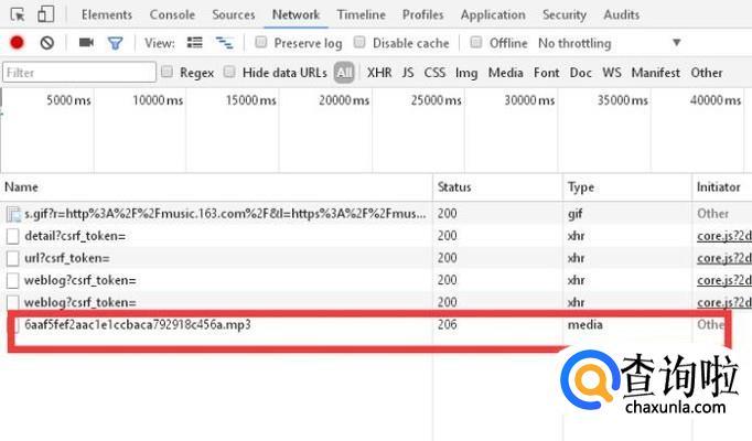 控制台大概就是这个界面。(不同的浏览器控制台的位置可能不同,一般是右侧或者是底侧)在这里点击控制台的network按钮。然后再点击播放按钮。控制台会自动侦测页面播放的视频和音频。
