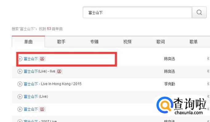 这里我用富士山下这首歌作为例子。鼠标点击富士山下。