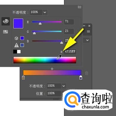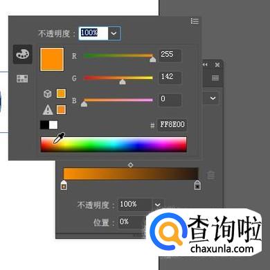 这渐变效果是默认的,我们可以自己修改下渐变颜色。在弹出来的渐变面板中,点击左侧的渐变滑块,调出设置颜色的面板。