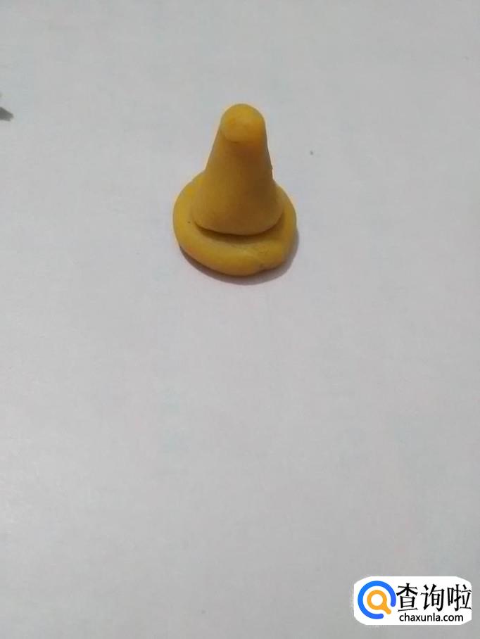 再用一块橡皮泥,捏成圆锥体,粘在底座上,当作奖杯的杯颈。