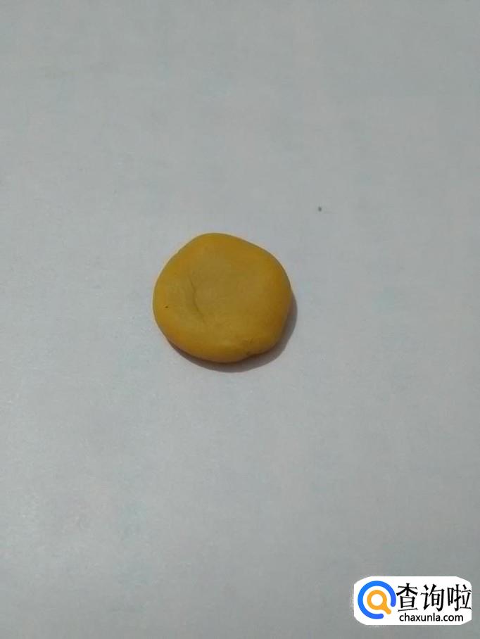 取下一小块橡皮泥,团成圆球,再按成圆片,当作奖杯的底座。