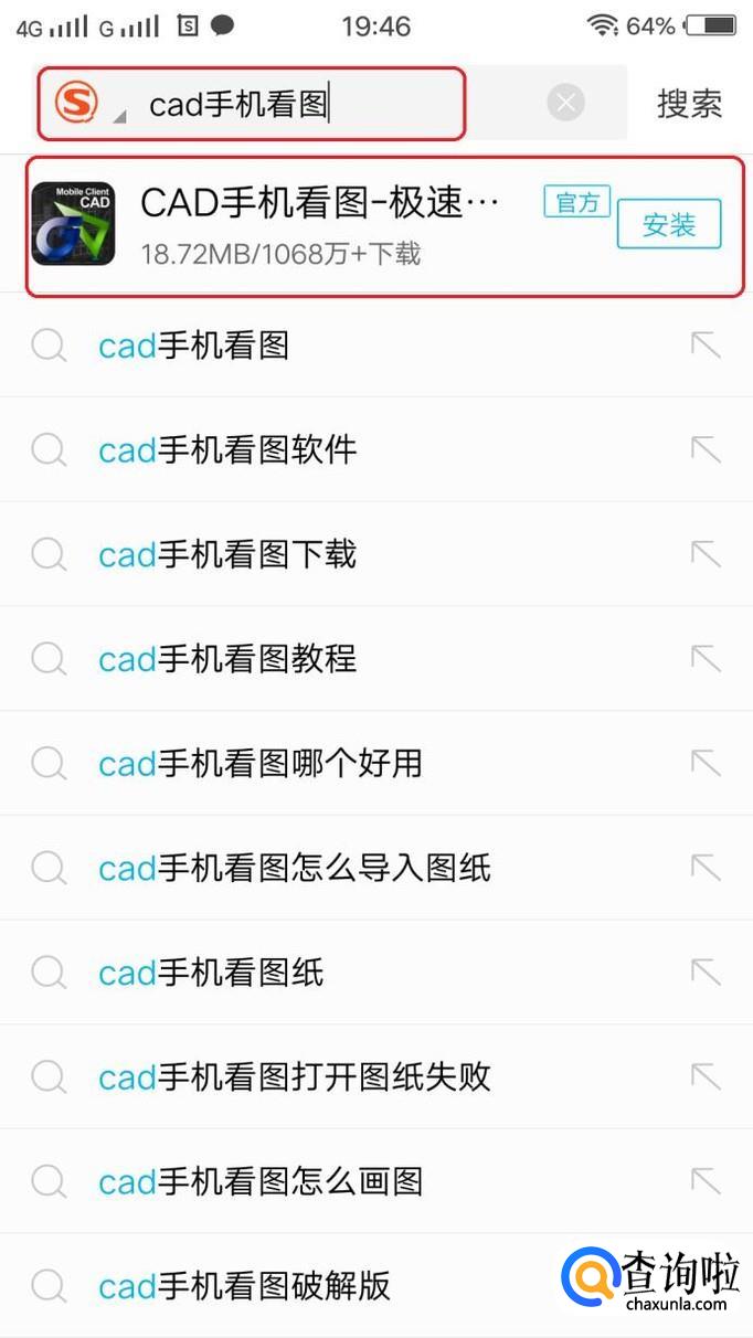 首先,浏览器搜索“cad手机看图”软件,把该软件下载安装至手机。