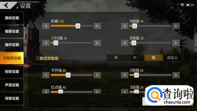 在此可以调节不开镜和所有倍镜打开时的灵敏度,可以选择高、中、低,或者自定义。