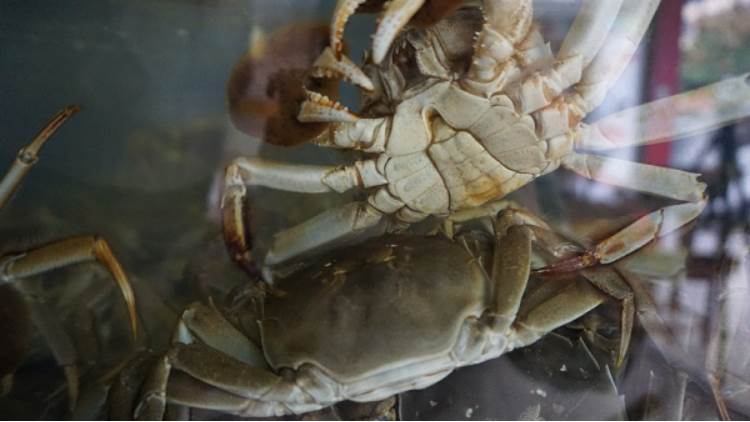 在储存期间,需要定时给大闸蟹投喂食物,可以喂一些螺丝肉或南瓜块。值得注意的是,公蟹和母蟹的喂食量不一样。对于公蟹来说,9月份的时候可以每天投喂5%-7%的螺丝肉或少量的南瓜,注意5%-7%的喂食量相当于一百斤的大闸蟹需要喂5-7斤的螺丝肉。对于母蟹来说,喂食量为公蟹的一半即可,也就是说在9月份的时候,母蟹的喂食量保持在2%-4%就好。