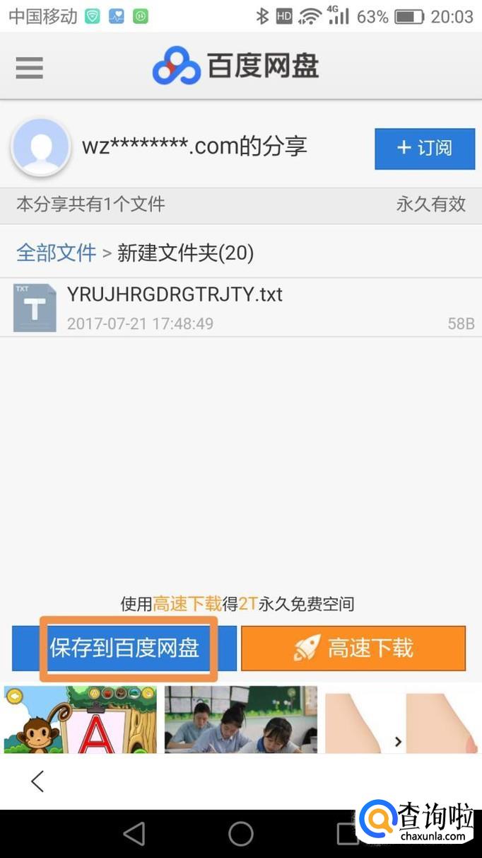 然后在搜狗搜索中输入自己想要查找的资源,找到后点击链接进去,再点击“保存到百度云盘”。