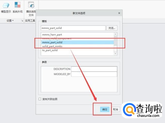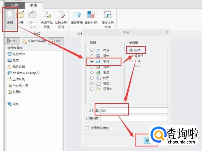 在创建窗口创建一个新的零件,创建过程如图所示。