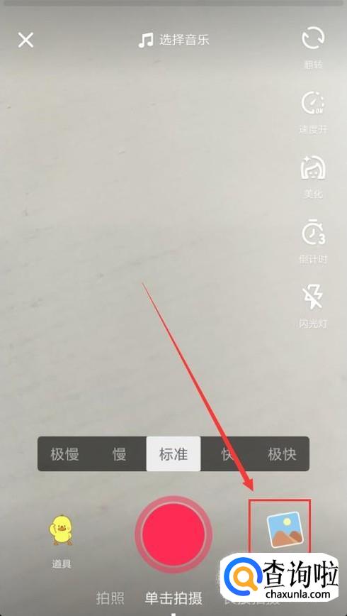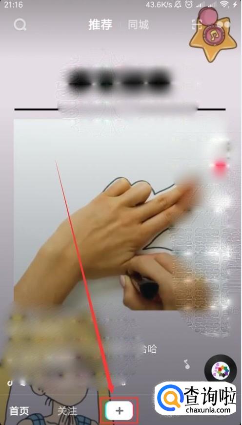 打开抖音App,点击下面的加号按钮,在拍摄界面点击右下角的“上传”。