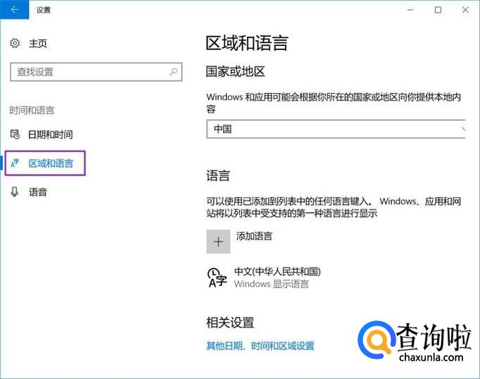 弹出的界面,我们点击时间和语言;