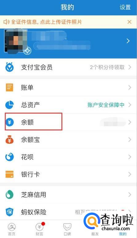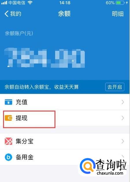 登录账号后选择余额。