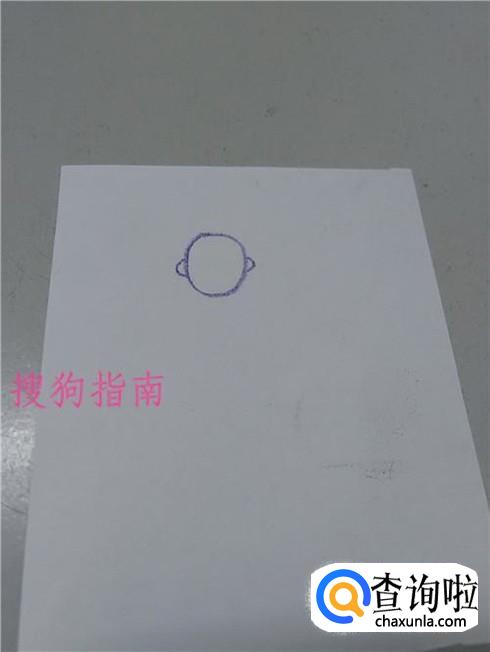 先用彩笔在纸上画一个圆,表示头部,在头的两侧各画一个半圆形,表示耳朵。