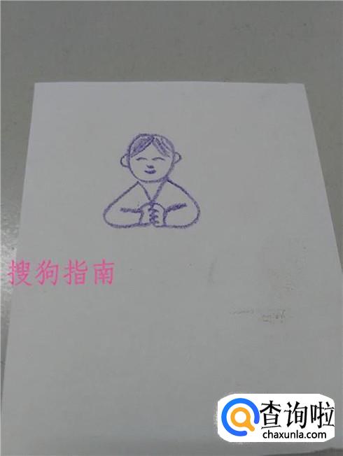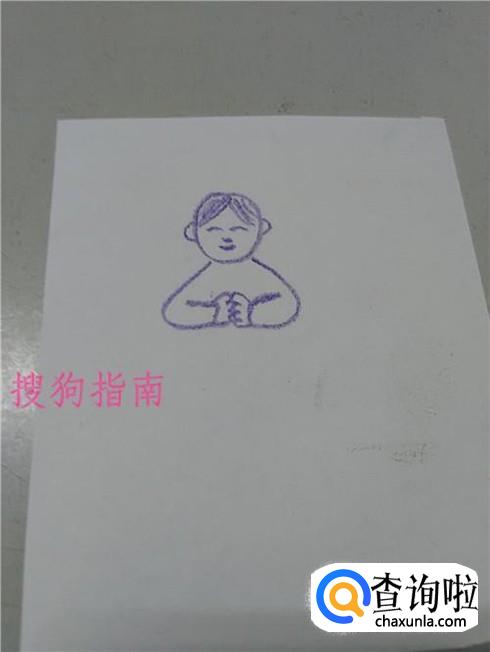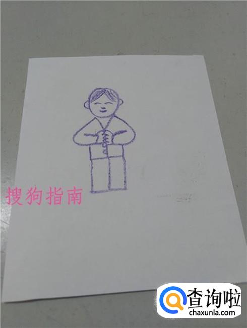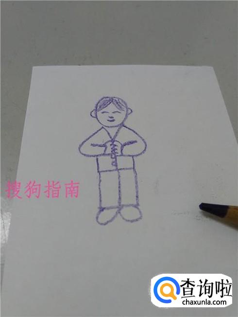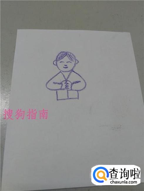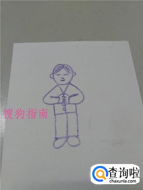 在手的下面画一个躺着的E,表示上衣和衣襟。