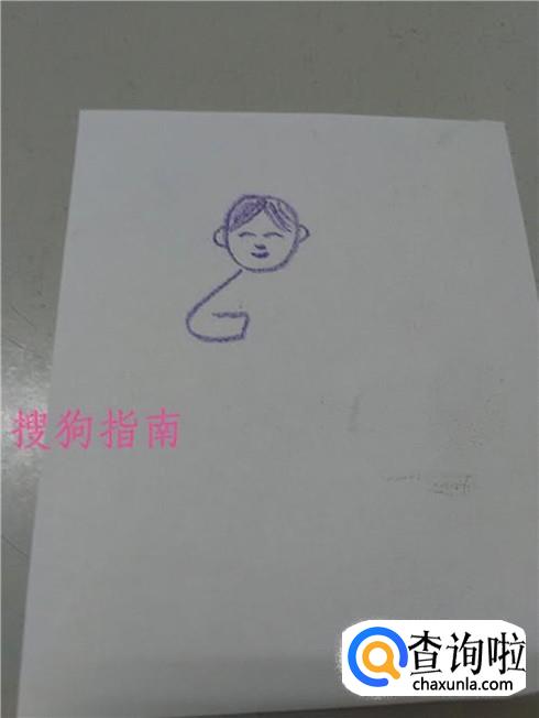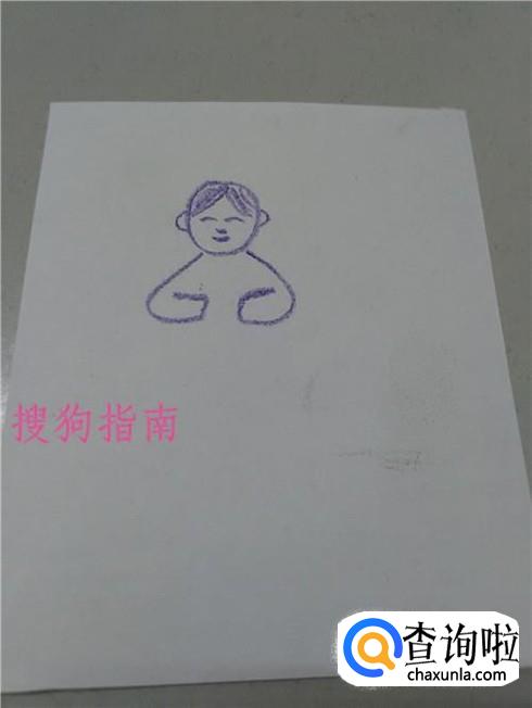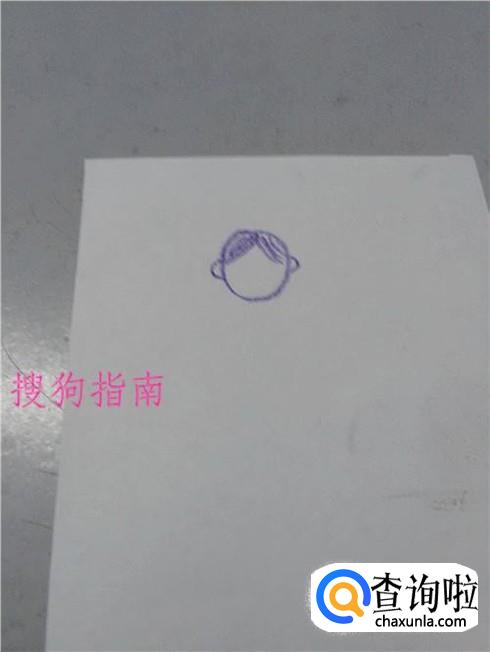 在头的上方画一个人字,将人字和圆形之间的部分,涂上颜色,表示头发。