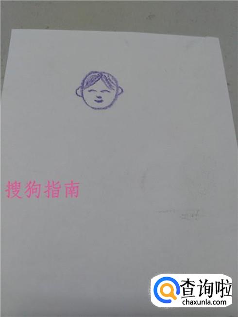 在头发下面画四条弧线,表示眉毛、眼睛、鼻子和嘴。