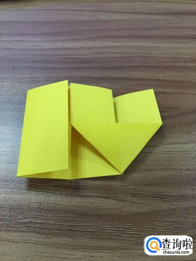 首先将纸张对折成长方形,把左边的边与右边的边对折成小正方形。如图