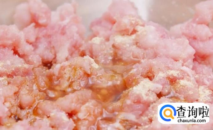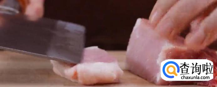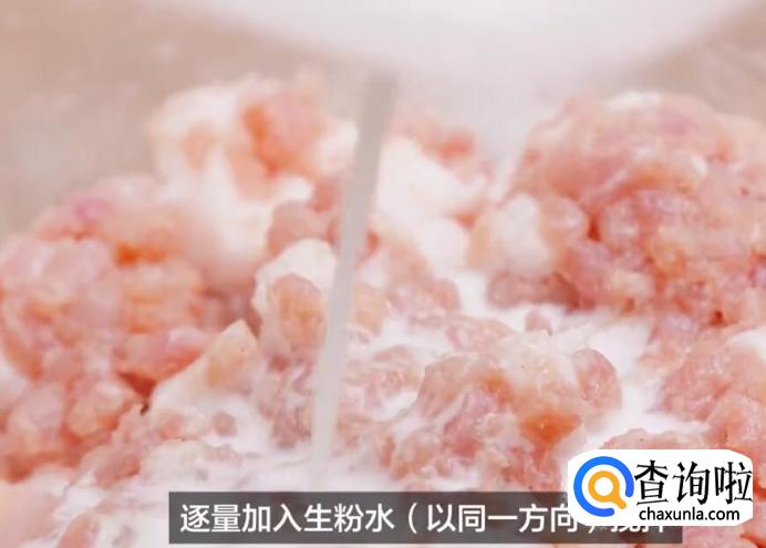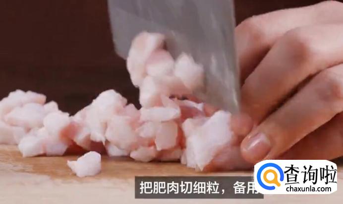 取3分肥,7分瘦的猪后腿肉,然后将肥肉和瘦肉分开。