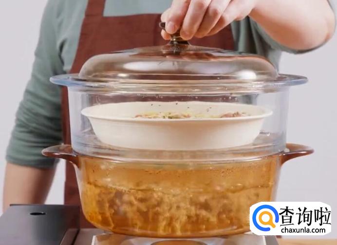 水沸后,入蒸锅,大火蒸8分钟左右。