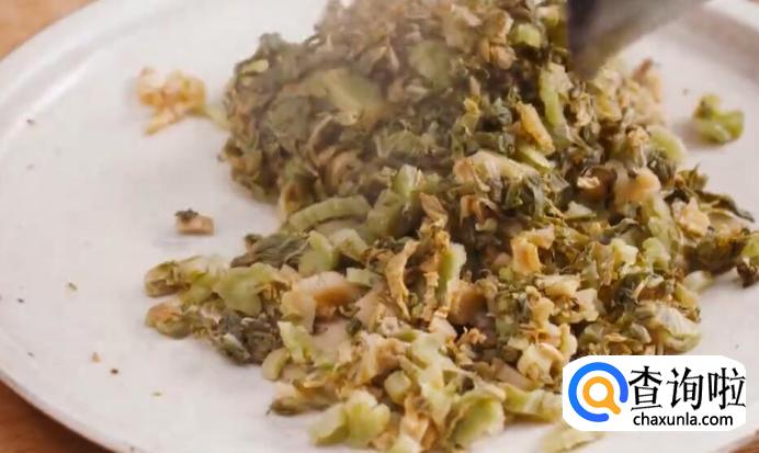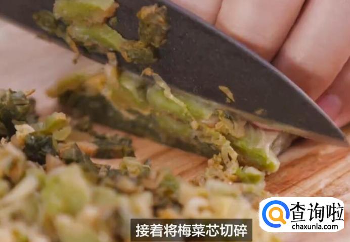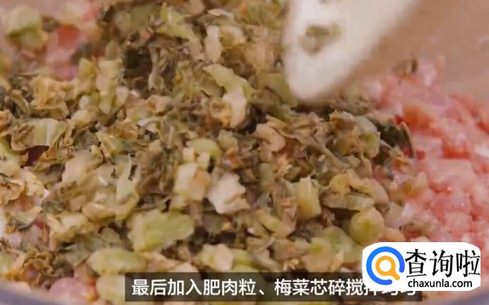 最后加入梅菜芯碎和肥肉粒,搅拌均匀。