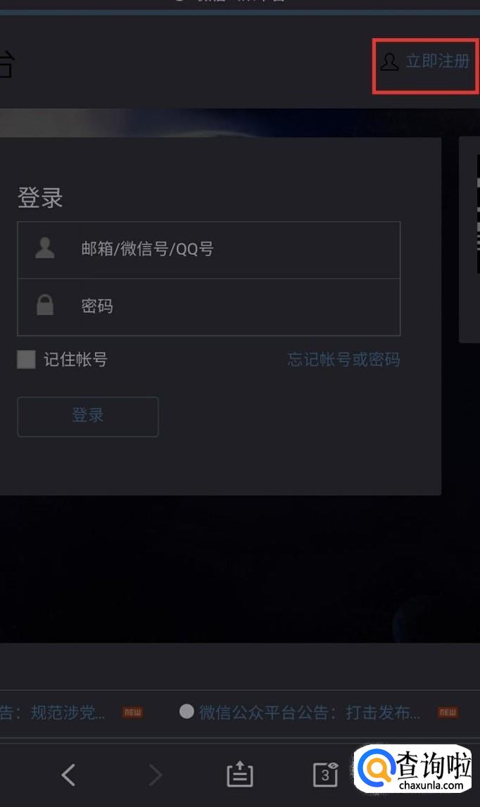 进入官网后,选择右上角的“立即注册”,进入注册页面。