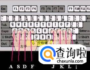 手指的键位分工。手指的键位分工是指手指和键位的搭配,就是把键盘上的全部字符合理地分配給十个手指,并且每个手指在键盘上都有明确的分工。除拇指外,其余8个手指各有一定的活动范围,把字符键划分8个区域,每个手指负责该区域字符的输入。请看下图,手指(除拇指外)所摆放的'A S D F J K L ;这8个键称为“基本键位”,键盘上的字母键位置是按照各字母在文字中出现的机会多少来排列的。在26个字母中,选出了用得比较多的7个字母和一个标点键作为基本的字键,这就是基准键,也叫做原位键。这 8 个键是:A -- 左手小指S -- 左手无名指D -- 左手中指 F -- 左手食指。J -- 右手食指K -- 右手中指 L -- 右手无名指;-- 右手小指,而左右手的拇指都放在下边黄色的空格键上;其中左右手食指分别放在被称为“基键”的F键和J键上,它们是盲打坐标,其键下方均有一个突起的小横杠,便于左右手食指尖触摸定位。凡处在打字准备状态时,十指均应分别放在基本键位和空格键上,每次击键结束后,手指仍然返回到基本键位和空格键上。