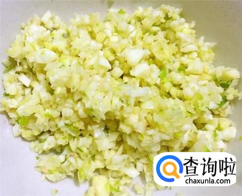 准备好适量的蒜头,用刀背把蒜头拍扁,去掉蒜衣,然后把蒜头剁碎。
