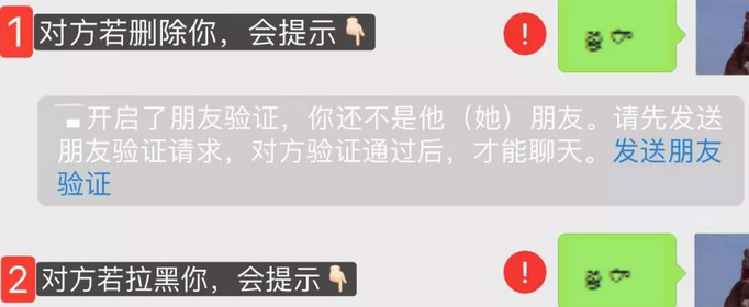 3、发消息不同:当彼此互删了以后,如果再想给对方发消息,则需要重新添加对方,才可以发消息。仅仅是单删时,被删除方可以给对方发消息,只是会显示感叹号,并且提示你不是对方好友,对方也不能看你所发的内容。如果是删除方则不可以给被删除方发送信息。