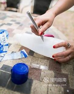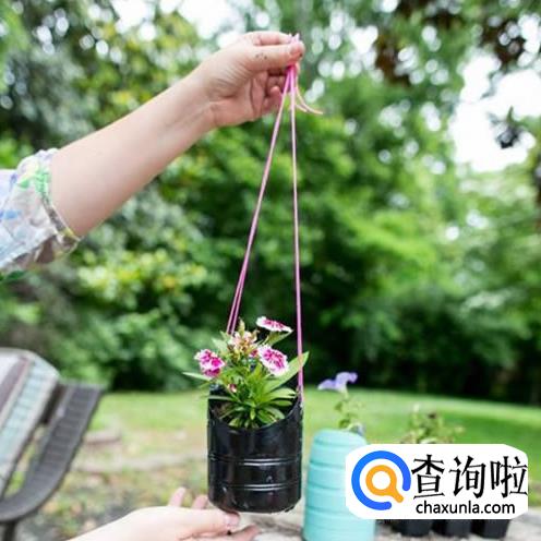 在塑料瓶上对称打孔,绑上绳子后稳定的挂起来。塑料瓶制作的小花篮就完成了,简单又漂亮。