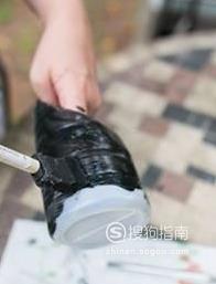 在瓶子上设计好造型,然后剪切下来,并涂上颜色。