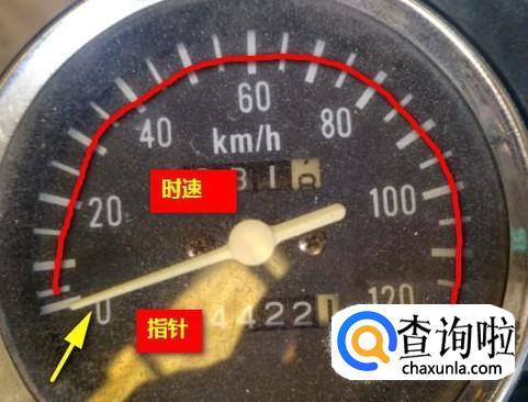 里程表一圈短竖线下面所对应的数字是时速数值,而黄色的指针所指向的表示当下摩托车行驶中的时速。下图中指针指向0,是因为现在摩托车已停下来。