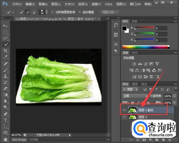 接着,同时按下电脑键盘“Ctrl+J”键,复制拷贝一个图层,如图所示。