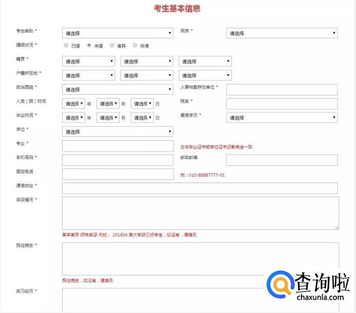 国考报名考生基本信息填写建议模板内容如下: