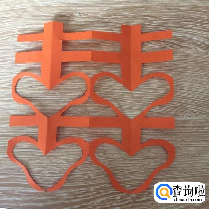最后将折纸展开就可以了,一张爱心红双喜就剪好了。
