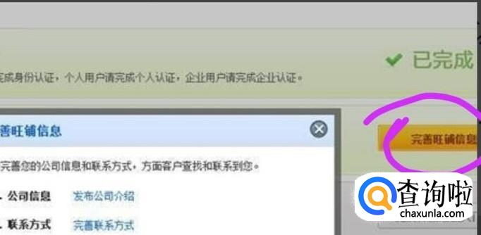 点击”完善旺铺信息“根据你个人或企业所经营的东西而决定。然后完善联系方式。完善信息后出现绿色”已通过“字样便可进行下一步操作。