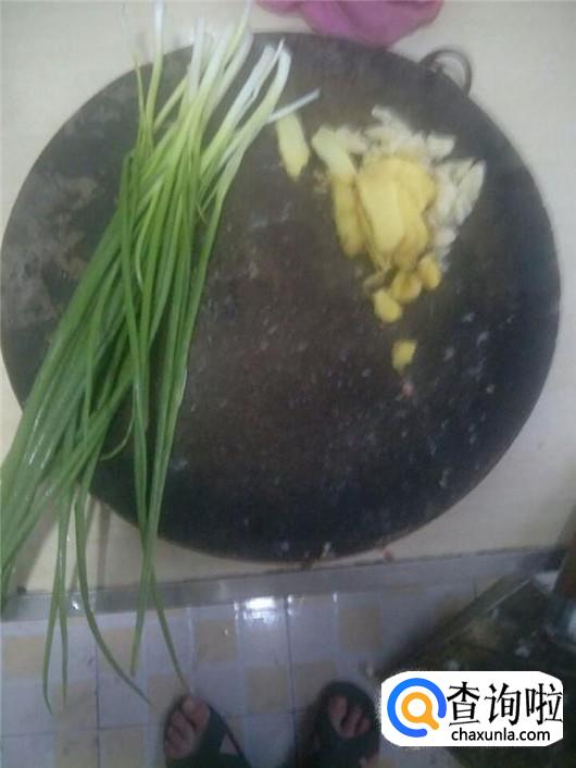 将大蒜排扁,把生姜切成片,葱子切成葱花备用,大蒜和生姜可以去腥味,也可以提味,是很好的调料。