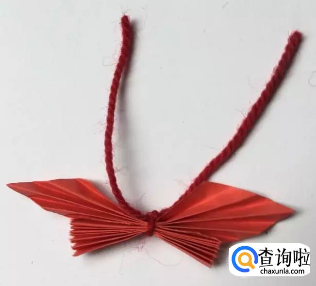 将两折好的扇形放在一起,将绳子穿过2个扇形