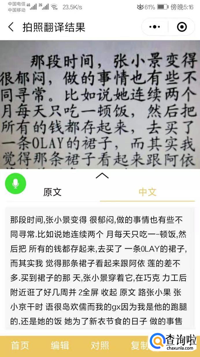 接着试一试第二个功能,点击拍照翻译,将摄像头对准需要翻译的地方,拍照翻译结果如下。