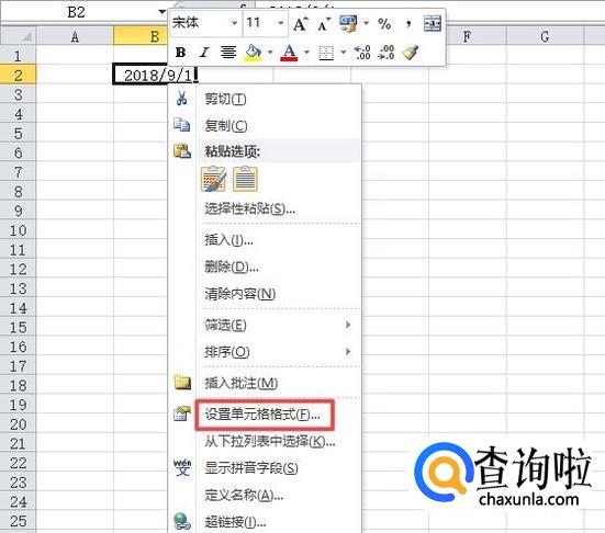 然后我们选中该单元格,之后右击选择设置单元格格式;